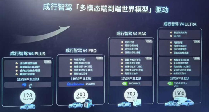 ◎ 成行智驾 V4 PLUS:硬件:11V3R 1L12U、J6M,128TOPS